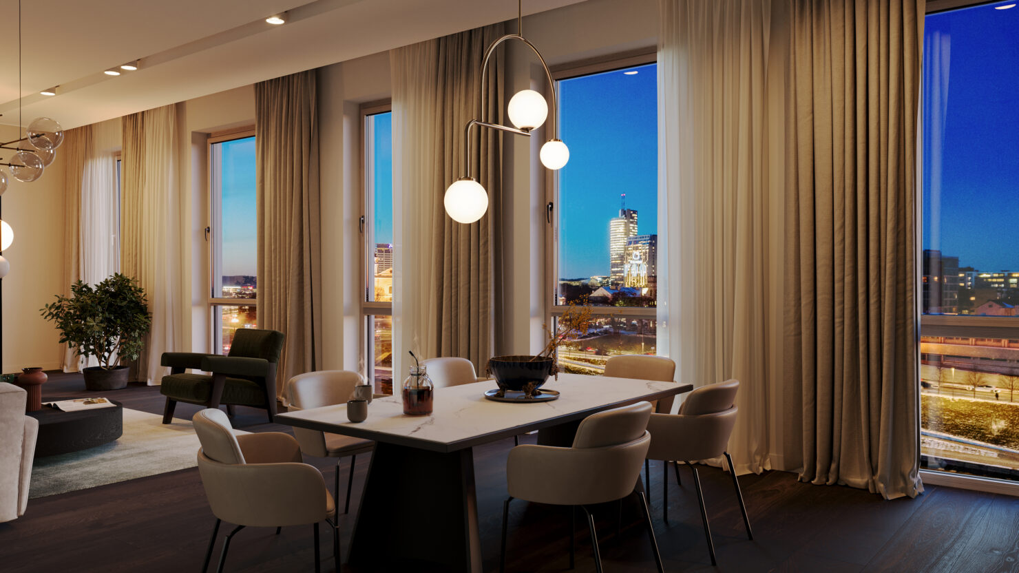 Architektūros studijos „HEIMA“ suprojektuota tikra, ateičiai kurta aplinka – jokių trumpalaikių tendencijų ir ryškių formų – tik tai, kas svarbu. Harmoningas, laikui nepavaldžių sprendimų ir subtilaus dizaino balansas pasitiks kiekvieną vakarą ir išlydės kiekvieną rytą. Tai ryšys, kurį stipriname kiekvienu prisilietimu.